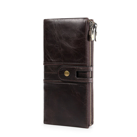European & American Oily Leather Long Wallets - RFID Shielded Anti-Theft Genuine Leather for Men & Women