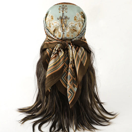 Luxury Brand Silk Satin Hijab - Fashion Scarves for Women, 70x70cm Square Shawls with Elegant Prints