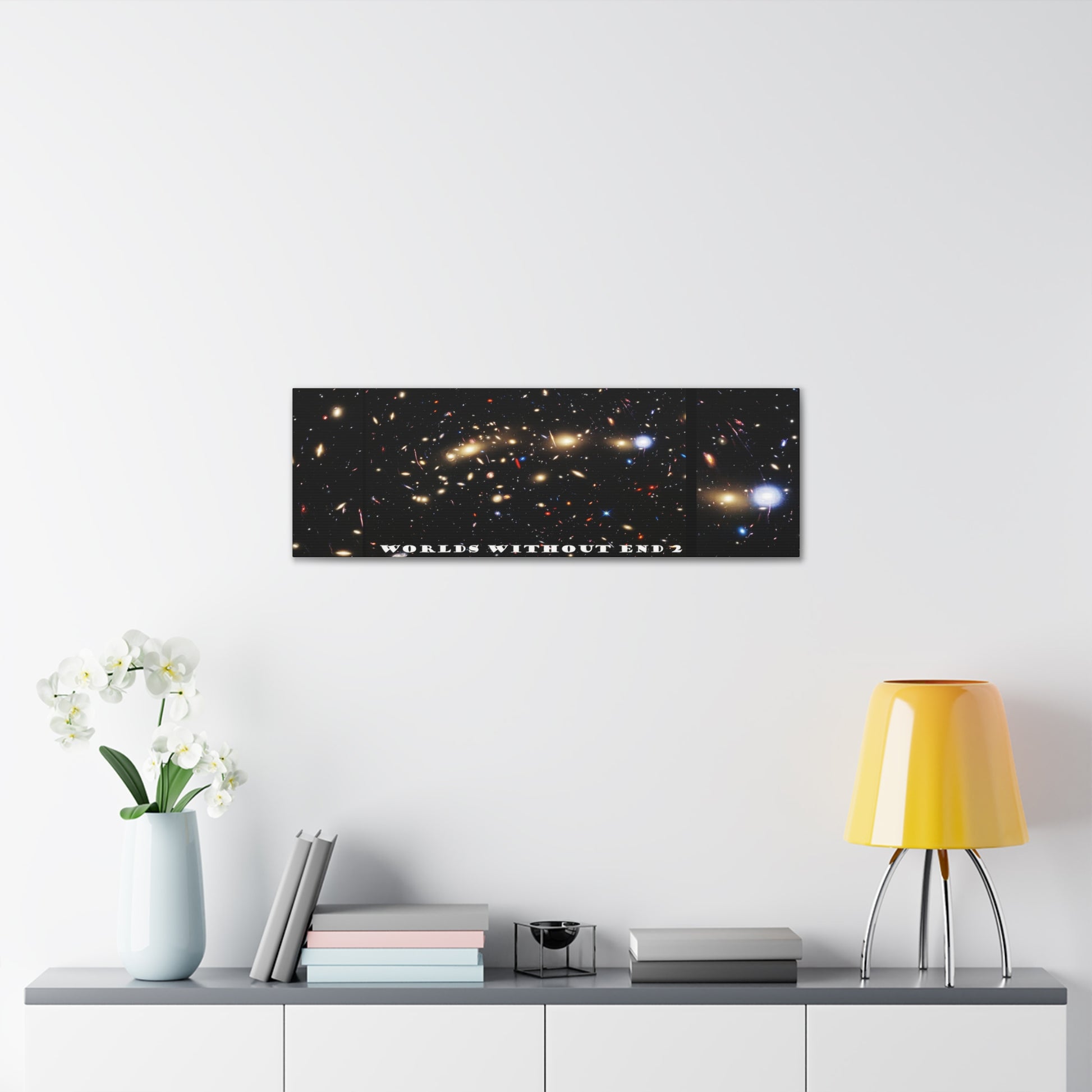 Embark on a journey beyond imagination with our Cosmos 4 "Worlds Without End" Canvas Gallery Wrap! This captivating print depicts a celestial landscape teeming with vibrant colors and intriguing details, sparking your sense of wonder. Expertly crafted with finely textured, artist-grade cotton canvas, this gallery wrap ensures exceptional clarity and a touch of artistic depth, faithfully reproducing the captivating artwork. Available in multiple sizes, you can find the perfect fit to transform any room into a portal to endless possibilities. Embrace the awe-inspiring beauty of the universe and bring a touch of celestial mystery into your home with this magnificent canvas print..