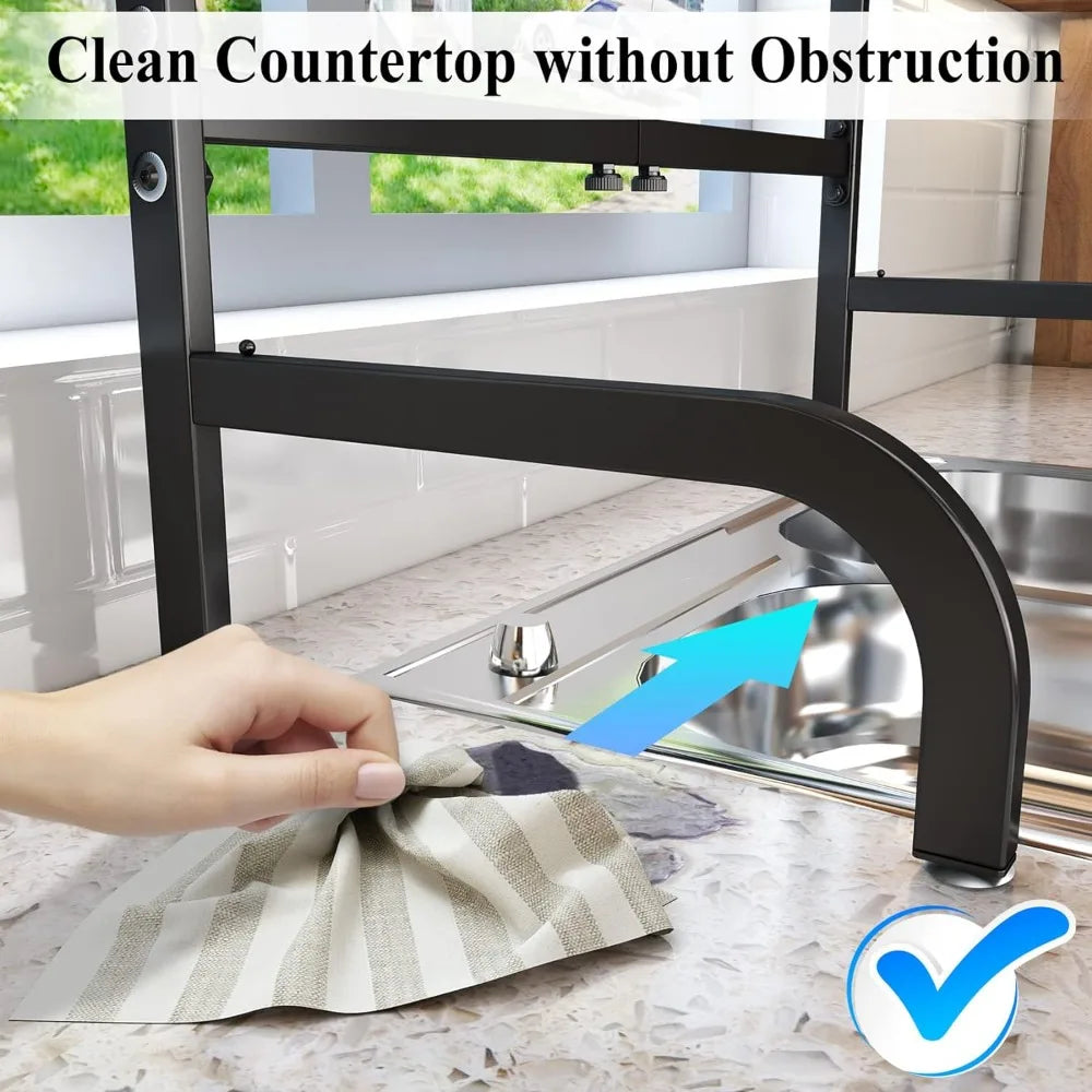 Maximize your kitchen space with our Adjustable Over-The-Sink Dish Drying Rack. Spanning 25.5 to 33.5 inches, this two-tier metal steel rack fits perfectly over your sink, providing ample room for drying dishes while saving valuable counter space. Designed for efficiency and style, it supports your kitchen's workflow and adds a modern touch to your décor. Sturdy, rust-resistant, and easy to clean, it's an essential tool for any busy kitchen, helping keep your countertops clutter-free and your dishes organized and accessible.