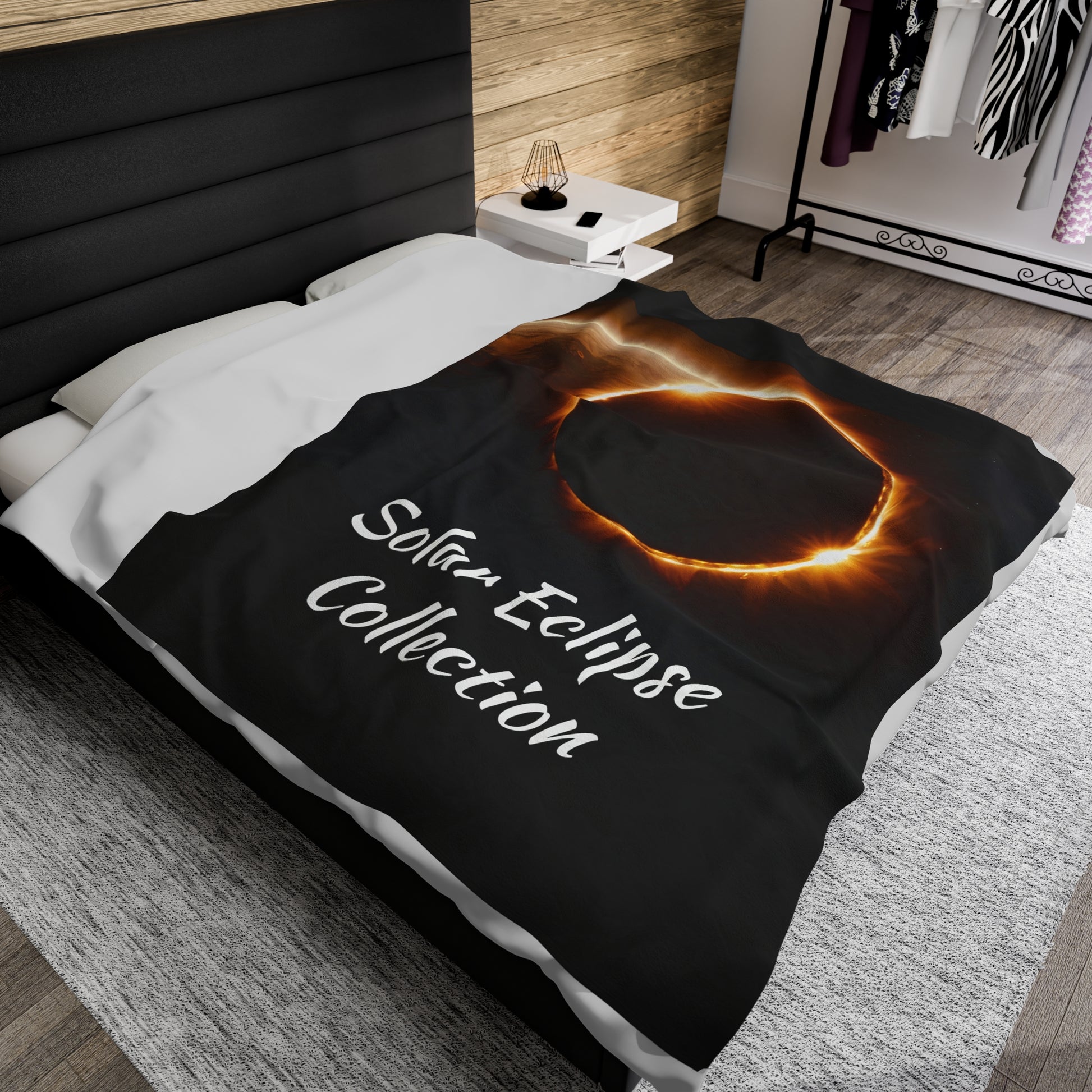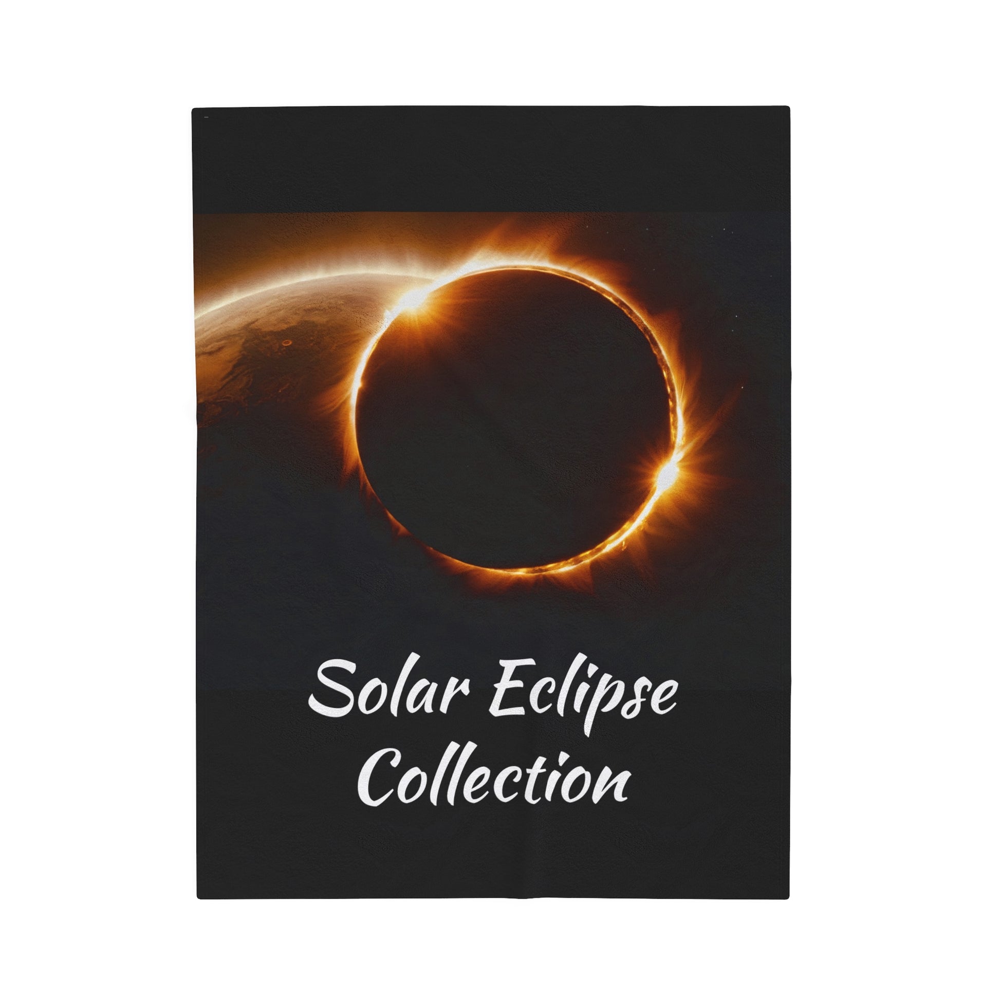"Solar Eclipse Collection Velveteen Plush Blanket" Create a cozy and warm atmosphere at home with this plush velveteen blanket. It is soft to touch and perfect for any home. a one-sided print to add your personal touch or create a gift for your friends and family. Available in three sizes: 30x40", 50x60", 60x80".